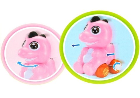 Słodki, kolorowy mały dinozaur zachwyci każdego maluszka. Dino można nakręcić, dzięki czemu śmiga po płaskiej powierzchni. Po nakręceniu rusza do przodu obracając głowę.