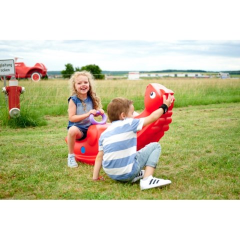 Bujak Wieloosobowy Dinozaur marki BIG jest prawdziwą gwiazdą wśród dzieci! Z bujaka może korzystać maksymalnie troje dzieci jednocześnie, a nawet jedno będzie się świetnie bawić. Gdy dzieci bujają się we dwójkę to dodatkowo rozwija u nich zdolności do współpracy. Solidne uchwyty zapewnią bezpieczeństwo a łuski na grzbiecie dinozaura zapobiegną zbyt gwałtownemu kołysaniu. Bujanie samo w sobie uspokaja dziecko oraz rozwija zdolności motoryczne ciała, co jest idealne dla prawidłowego rozwoju. Z huśtawki można korzystać zarówno w domu jak, i na zewnątrz!