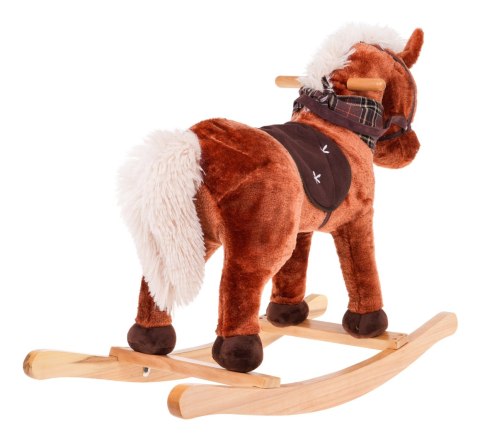 Bujany Konik Koń na Biegunach dla dzieci 24m+ Brązowy + Dźwięki + Drewniana rączka + Wygodne siedzisko + Drewniane płozy