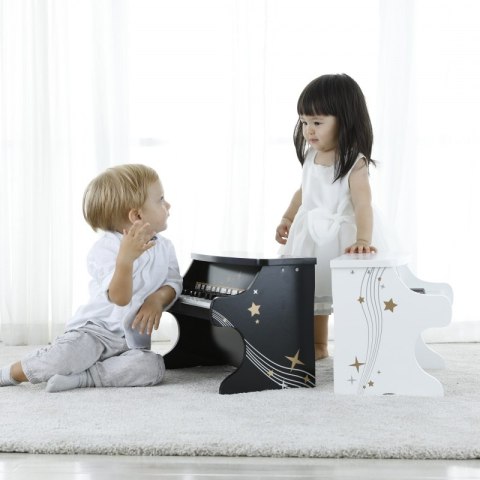 Dziecięce czarne pianino Classic World to elegancki i funkcjonalny instrument, który zaprasza najmłodszych do odkrywania świata muzyki. Wykonane z drewna i pomalowane na klasyczny czarny kolor, emanuje estetyką i trwałością. Dźwięk wydobywany z instrumentu jest czysty i przyjemny — idealny do pierwszych prób muzycznych. Pianino może być początkiem muzycznej pasji i źródłem wielu radosnych chwil w domu. To zabawka, która nie tylko bawi, lecz także inspiruje twórcze działania dziecka.