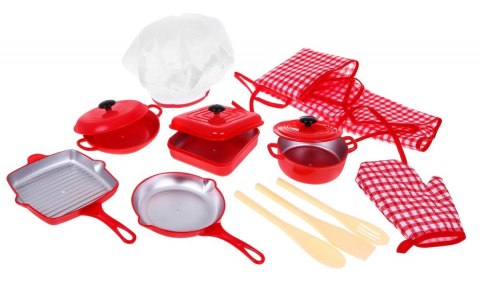 Czerwony zestaw małego Kucharza dla dzieci 3+ Strój szefa kuchni + Garnki + Akcesoria 14 el.