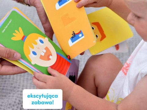 W książeczce znajduje się 38 pytań i odpowiedzi. Zagadki poruszają tematy bliskie dzieciom i pozwalają na zabawę nawet z niemówiącym jeszcze maluszkiem. Dzięki poręcznemu formatowi i wygodnej zawieszce książeczka idealnie sprawdzi się w domu, w podróży czy na spacerze.
