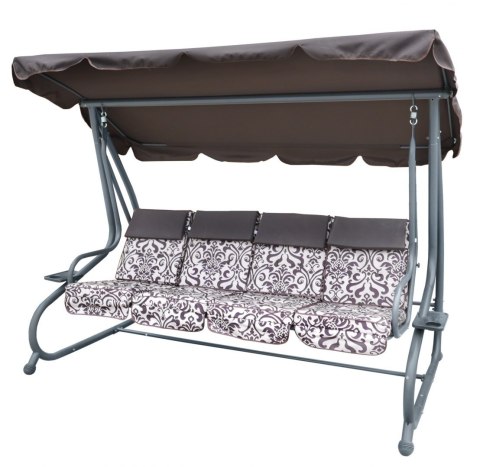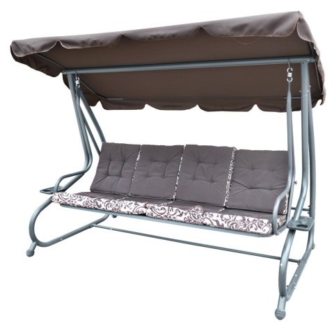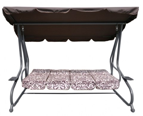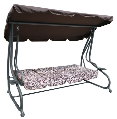 | Opis | Huśtawka ogrodowa z rozkładanym siedziskiem i regulacją daszka, ciemny brąz ze wzorem [8078 PATTERN CB] |