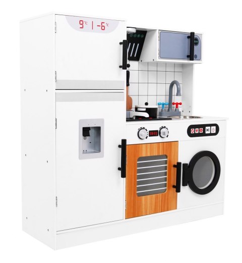 Duża Kuchnia z Drewna dla dzieci 3+ biała + Interaktywne Dźwięki Światła + Akcesoria
