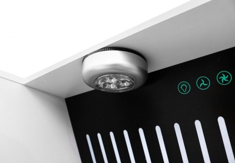 | - podświetlany okap, - migające światełka na dystrybutorze wody, - podświetlane, migające płyty grzewcze, - odgłosy gotowania i smażenia, - odgłosy „nalewania wody" z dystrybutora, - otwierana lodówka, - otwierana kuchenka, - otwierana pralka, - otwierana mikrofalówka, - kran z ruchomymi kurkami, - ruchome pokrętła w kuchence. |
