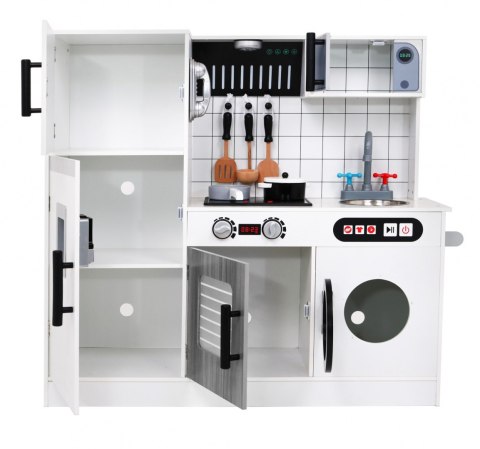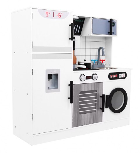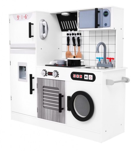 Duża Kuchnia z Drewna dla dzieci 3+ szara + Interaktywne Dźwięki Światła + Akcesoria