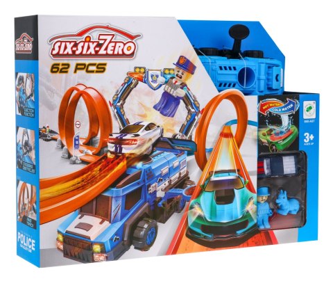 Ekstremalny, solidnie wykonany tor wyścigowy z dwiema pętlami i samochodzikami w zestawie to propozycja dla dzieci od trzeciego roku życia. Zabawka nie wymaga użycia baterii. Zestaw zawiera dwa pojazdy, dużą ciężarówkę z wyrzutnią oraz pojazd który po zmoczeniu wodą zmienia kolor. Na torze wyścigowym umiejscowiono dwie duże pętle z obrotem pojazdu o 360 stopni oraz różne przeszkody, by zabawa była ciekawsza. Cały zestaw zawiera 62 elementów do samodzielnego montażu. |