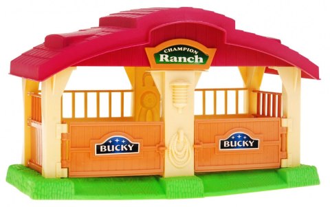 | - 4 osobowa rodzina farmerów, - dużych rozmiarów stodoła z otwieranymi drzwiami, - stadnina dla koni, - traktor, - poidło, - korytko, - beczka, - 2 snopy siana, - 2 koniki, - krówka, - owieczka, - piesek, - drzewo. |
