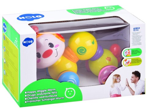 W trakcie grania muzyki głowa zabawki świeci zmieniając kolory. Głowa gąsieniczki jest ruchoma i można ją obracać w prawo lewo.
