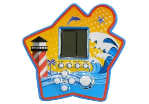 Gra elektroniczna w obudowie w kształcie gwiazdy jest bardzo lekka, co w połączeniu z niedużymi wymiarami czyni ją kieszonkowym wariantem, który możesz zabrać ze sobą wszędzie. Składa się z wyświetlacza oraz białych przycisków odpowiadających za funkcje gry. Możemy nimi uruchomić i wyłączyć grę, zatrzymać rozgrywkę, wyłączyć dźwięki lub zresetować planszę, by móc zacząć układać klocki od początku. Pozostałe przyciski służą do nawigacji podczas gry, a także obracania klocków. Kieszonkowa wersja gry elektronicznej umili czas zarówno dziecku, jak i dorosłemu. Rewelacyjnie sprawdzi się w przerwie pomiędzy zajęciami, a także w autobusie lub w domu podczas relaksu.