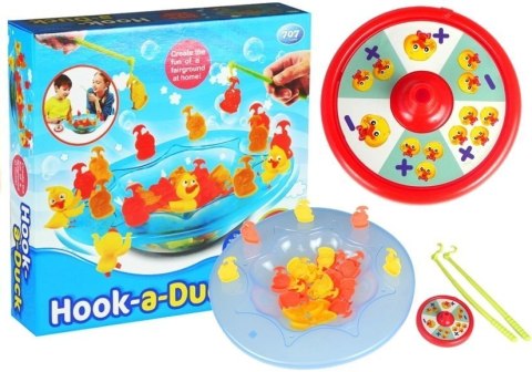Prezentowana gra zręcznościowa jest wspaniałą propozycją dla cierpliwych maluchów, które uwielbiają wesołe i ciekawe zabawy, wymagające sprytu i skupienia. Zasady gry są bardzo proste. Należy umieścić staw na płaskim podłożu, na przykład na blacie stolika, a następnie ułożyć na obrzeżach planszy osiem kaczek dookoła — resztę wrzucić do stawu. Każdy zawodnik kręci kołem losującym, by dowiedzieć się, jaki będzie jego kolejny krok. Jeśli złowiona kaczka wpadnie do stawu albo na podłogę, gracz traci szansę. Gra kończy się, gdy w środku stawy nie będzie już żadnej kaczuszki do złowienia. Wygrywa osoba, która wyłowiła ostatnią z nich. Zabawę utrudnia chwiejący się podczas łowienia kaczek staw.