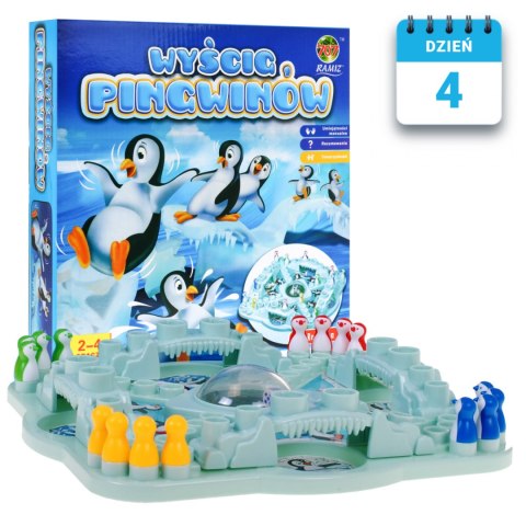 Gra planszowa "Wyścig pingwinów" chińczyk dla dzieci 4+ i dorosłych + Kolorowe pingwiny + Kostka w kuli