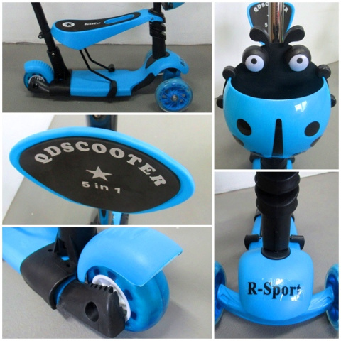Hulajnoga H3 NIEBIESKA Jeździk 5w1 R-Sport Świecące koła LED