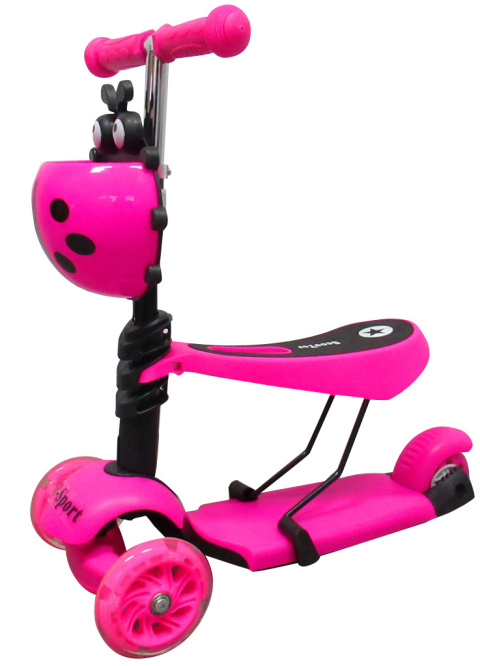 - Hulajnoga z ozdobnym koszyczkiem i siedziskiem - czyli druga forma jeździka.
