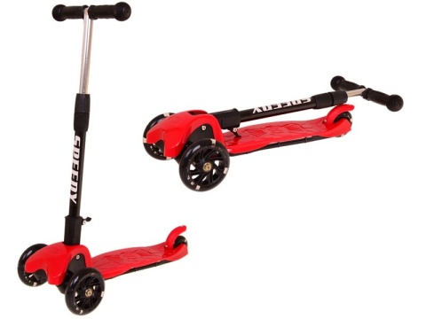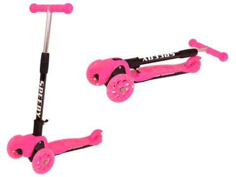 Dzięki zastosowaniu trzech kółek, hulajnoga jest stabilna i bezpieczna . Posiada tylni hamulec, pełniący równocześnie rolę błotnika . Przednie koła wyposażone są w diody LED, które świecą podczas jazdy. Solidne wykonanie i ciekawa kolorystyka sprawią niewątpliwie radość podczas użytkowania zabawki.