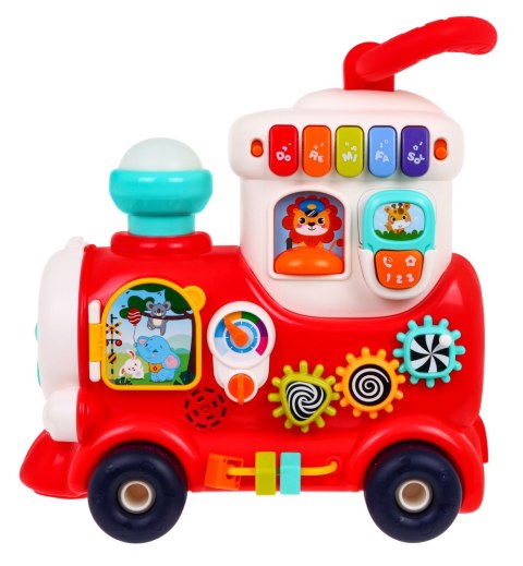 Interaktywna Lokomotywa 4w1 dla dzieci 12m+ Pchacz + Chodzik + Wózek + Zabawka edukacyjna