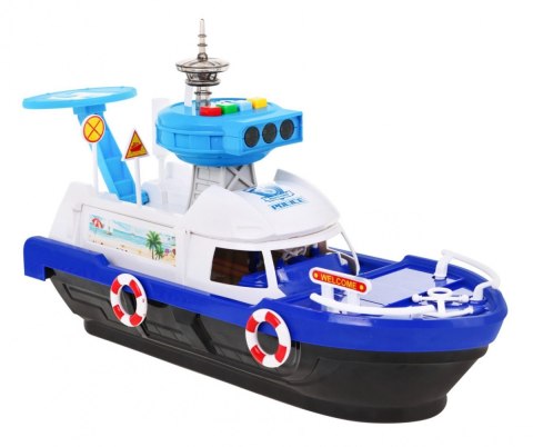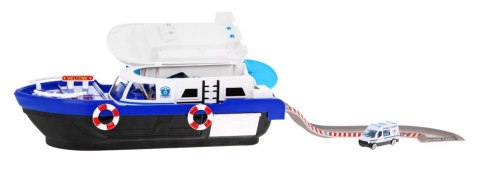 Interaktywne Policyjna łódź 2w1 dla dzieci 3+ Schowek na resoraki + 3 pojazdy + Światła Dźwięki