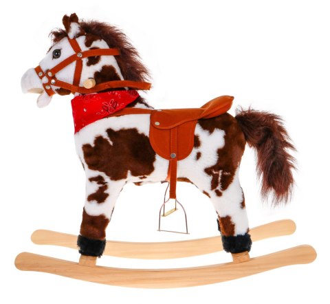 Łaciaty konik na biegunach dla dzieci + Interaktywne efekty + Plusz Drewno