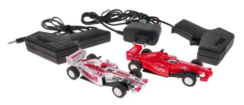 - elementy konstrukcyjne toru, - 2 samochody wyścigowe na gumowych oponach, - 2 piloty RC, - instrukcja montażu. |