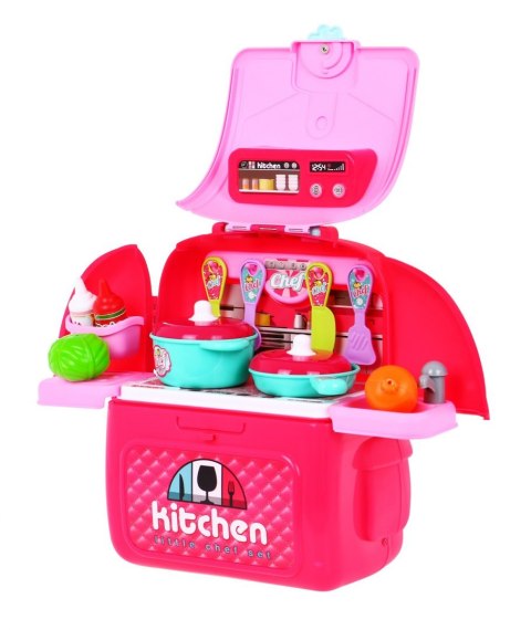 Różowa Kuchnia plecak 2w1 dla dzieci 3+ Rozkładany blat + Garnki + Akcesoria 24 el.