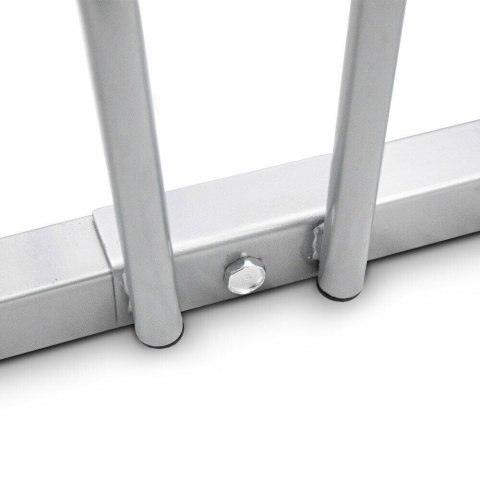 Metalowy stojak na rowery nada się zarówno pod daszek jak i na otwartą przestrzeń, jest wykonany z dobrej jakości metalu, dzięki czemu jest on odporny na warunki atmosferyczne. Wyposażony w otwory ma możliwość stabilizacji do podłoża. Stojak serwisowy nada się do rowerów, które mają szerokość opon od 35 do 60 mm, jest to standardowa szerokość opony dla rowerów, więc praktycznie dopasowany jest pod wszystkie pojazdy jednośladowe.