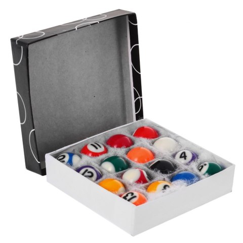 | - stół bilardowy, - 16 bil, - 2 kije, - trójkąt, - kreda, - szczotka do czyszczenia powierzchni stołu. |