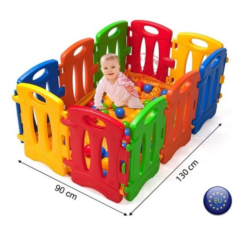 Płotek dla dzieci, z którego można ułożyć kojec dla dziecka, aby mogło się bawić w środku. Wystarczy umieścić wewnątrz pluszaka, miękką pościel lub ulubioną zabawkę. Można również użyć go jako płotka, aby zagrodzić miejsca, w które nie chcemy, aby uczęszczał maluch.