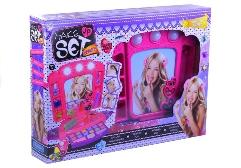 Toaletka Zestaw Kosmetyki Lusterko Światełka Róż