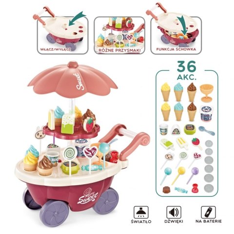 WOOPIE Sklep Wózek z Lodami Słodyczami Dźwięk Światło + 36 Akc