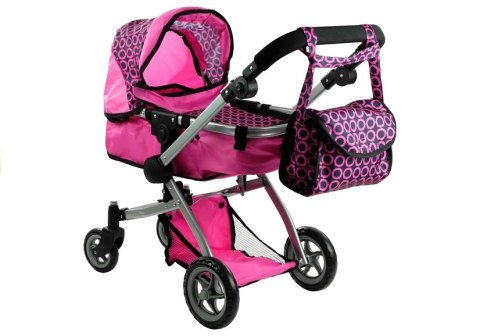 Głęboki wózek z funkcją spacerówki — różowo-czarny w kółeczka