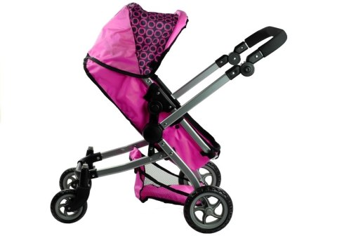 Wózek 2 w 1 przyciąga wzrok wszystkich dziewczynek swą konstrukcją, przypominającą budowę prawdziwego wózka, a także dziewczęcą kolorystyką, przełamaną detalami w formie wzoru kółeczek. To także rewelacyjny przedmiot dla kilkulatek, które lubią opiekować się zabawkowymi bobasami w różnych rozmiarach — od teraz mogą wyprowadzać swe lalki na spacer zarówno w spacerówce, jak i klasycznym wózku z gondolą. Zmiana tych wariantów jest bardzo prosta — wymaga zaledwie kilku ruchów, a w dużym stopniu urozmaica zabawę. Kolejną, dużą zaletą innowacyjnej konstrukcji wózka dla lalek jest zamontowanie dwóch kół stałych oraz dwóch mniejszych, obrotowych o 360 stopni kółek, które sprawiają, że prowadzenie wózka i manewrowanie nim na drodze jest bardzo lekkie i niewymagające siły.