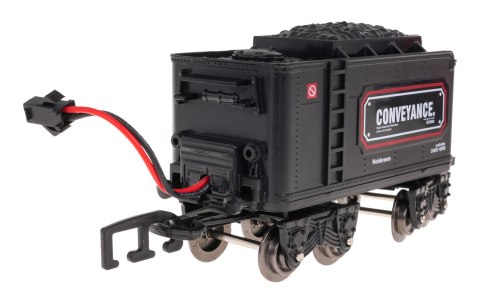 - lokomotywa, - wagon z węglem, - wagon z kontenerem, - wagon dla zwierząt, - części składowe toru, - pilot 2,4 GHz, - akumulator 3,7V, - pipetka na wodę, - kabel do ładowania USB, - instrukcja obsługi, - stacja, - elementy dekoracyjne kartonowe: góry, miasto, most, drzewko, sygnalizacja świetlna, znaki drogowe, 5 postaci |