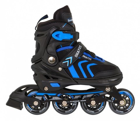 | Buty | - 5 stopniowy system regulacji rozmiaru za pomocą przycisku (29-33) - wewnętrzna długość buta od 16,5 cm do 20 cm, - półtwarda konstrukcja zapewniająca elastyczność buta i bezpieczeństwo kostki - zapięcie trzy sekwencyjne: - sznurowadła - pasek na rzep - klamra (regulacja + zabezpieczenie przed otwarciem) - hamulec w prawej rolce - system wentylacji - półprzepuszczalna membrana - wkładka profilowana - wkładka rolki wypełniona miękką pianką EVA pokryta zewnętrzna warstwą materiału Velvet |