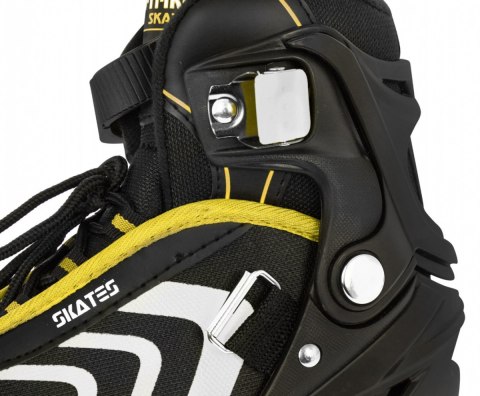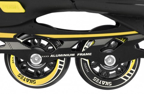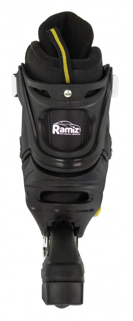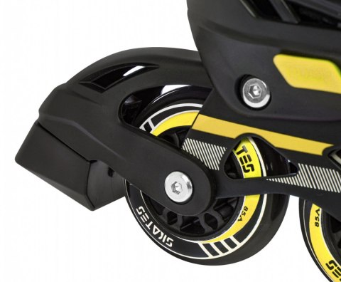 | Buty | - 5 stopniowy system regulacji rozmiaru za pomocą przycisku (34-38) - wewnętrzna długość buta od 20,5 cm do 23,5 cm, - półtwarda konstrukcja zapewniająca elastyczność buta i bezpieczeństwo kostki - zapięcie trzy sekwencyjne: - sznurowadła - pasek na rzep - klamra (regulacja + zabezpieczenie przed otwarciem) - hamulec w prawej rolce - system wentylacji - półprzepuszczalna membrana - wkładka profilowana - wkładka rolki wypełniona miękką pianką EVA pokryta zewnętrzna warstwą materiału Velvet |
