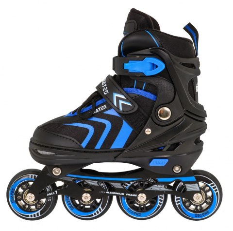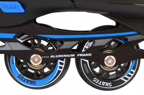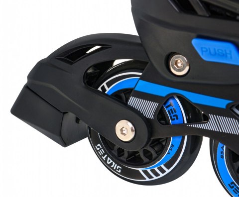 | Buty | - 5 stopniowy system regulacji rozmiaru za pomocą przycisku (39-43) - wewnętrzna długość buta od 24 cm do 27,5 cm, - półtwarda konstrukcja zapewniająca elastyczność buta i bezpieczeństwo kostki - zapięcie trzy sekwencyjne: - sznurowadła - pasek na rzep - klamra (regulacja + zabezpieczenie przed otwarciem) - hamulec w prawej rolce - system wentylacji - półprzepuszczalna membrana - wkładka profilowana - wkładka rolki wypełniona miękką pianką EVA pokryta zewnętrzna warstwą materiału Velvet |
