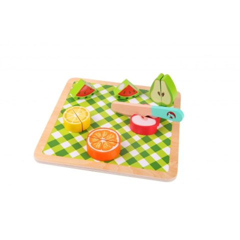 • - Zestaw zawiera 20 elementów, m.in. dwustronną deskę, nożyk i owoce.