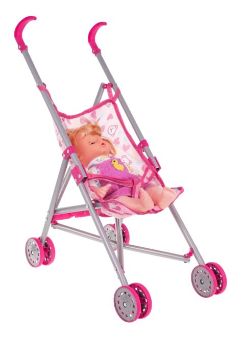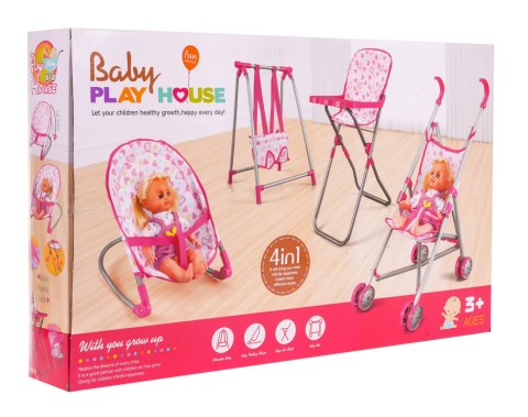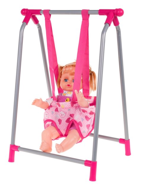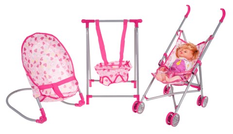 Zestaw do Opieki nad Lalką 3w1 dla dzieci 3+ Różowy + Wózek + Huśtawka + Bujak + Lalka