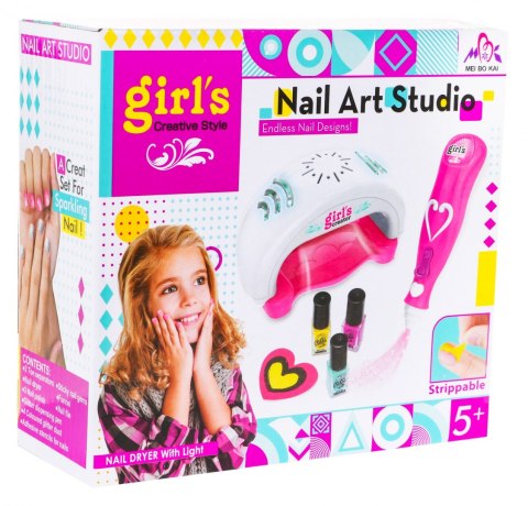 Zestaw do robienia paznokci dla dziewczynki 5+ Suszarka do paznokci Maszynka do brokatu Lakiery 15 el.
