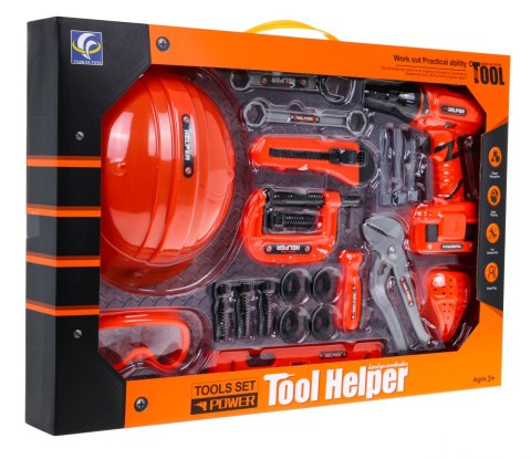 Bogato wyposażony zestaw narzędzi z wiertarko-wkrętarką zasilaną na baterie, kaskiem i mnóstwem akcesoriów to propozycja dla dzieci od 3-go roku życia. Wkrętarka zasilana jest bateriami typu 2 x AA 1,5V (brak w zestawie).