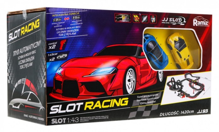 Wyścig można rozgrywać w parach. Dostępne są 2 różnokolorowe autka sportowe oraz 2 kontrolery do zdalnego sterowania. Podczas zabawy pomocny będzie zamontowany przy mecie licznik okrążeń, który pozwoli przestrzegać zasad wyścigu, nawet przy największych emocjach.