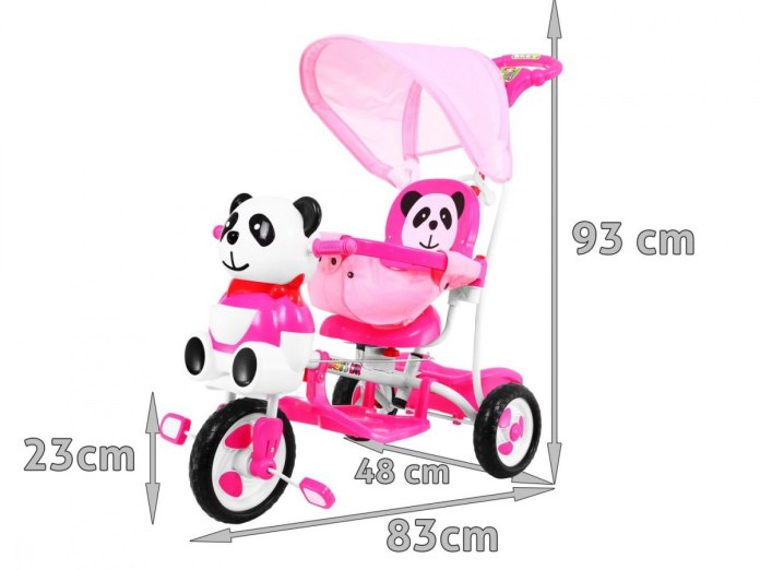 3-kołowy Rowerek dla dzieci Panda Różowy + Dźwięki + Daszek + Barierka + Podnóżek + Rączka + Schowek