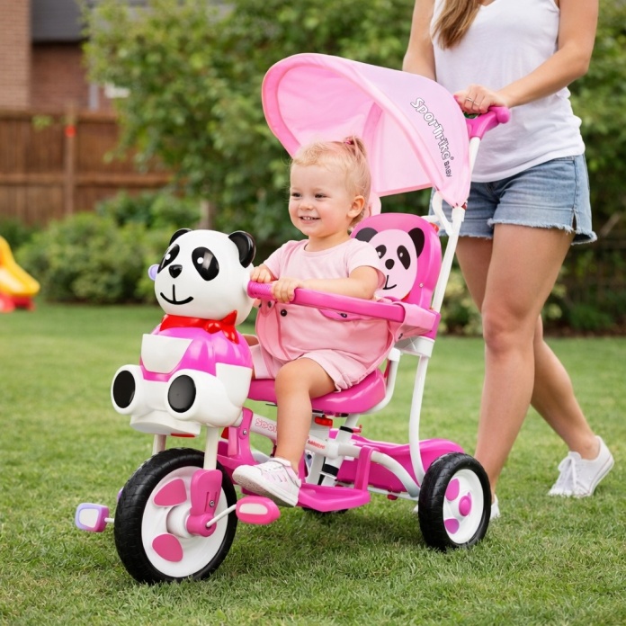 Rowerek Trójkołowy dla Dzieci z Daszkiem i Prowadnikiem – SportTrike Panda