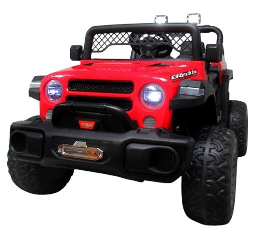 Wyposażenie pojazdu: pilot zdalnego sterowania 2.4G, funkcja wolnego startu, piankowe koła Eva, miękkie siedzisko z ekoskóry, nowoczesny panel muzyczny z melodyjkami, regulacja głośności, gniazdo MP3 i USB, wskaźnik naładowania baterii (voltomierz) na panelu muzycznym, Imitacje amortyzatorów na przedniej i tylnej osi, przełącznik przód-tył, przycisk włączania-wyłączania, włącznik/wyłącznik świateł, 1 akumulator litowo-jonowy12V4,5 Li-Ion ładowarka (wejście 220-230 V), pasy bezpieczeństwa, świecące światła przednie i górne, klakson i muzyka w kierownicy, otwierane drzwi (oboje), blokada drzwi, dźwięk zapalanego silnika, 2 lusterka boczne, 4 biegi (przód: wolny, szybki, najszybszy: tył: stała), zmiana prędkości następuje tylko z pilota; pedał gazu, Uwaga: górne lampy wymagają dodatkowych baterii paluszków (duże: AA)