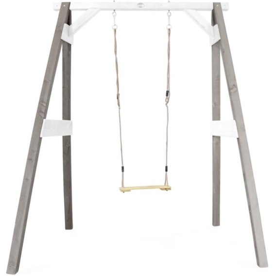 Axi Huśtawka drewniana szarazestaw plac zabaw Drewniany zestaw huśtawek Axi składa się z pojedyńczej tradycyjnej huśtawki. Dzięki szerokiej rozpiętości może ona dostarczyć niezapomnianych chwil ruchu na świeżym powietrzu, śmiechu i zabawy na długie lata, tak jak każdy inny produkt firmy Axi.