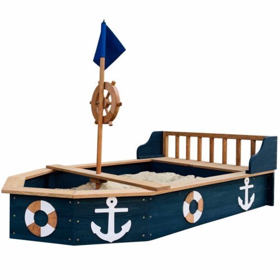 - Każdy maluch może stać się kapitanem swojego statku! Kształt łodzi z obrotowym sterem, flagą na maszcie i dekoracyjnymi kotwicami sprawia, że zabawa staje się jeszcze bardziej ekscytująca