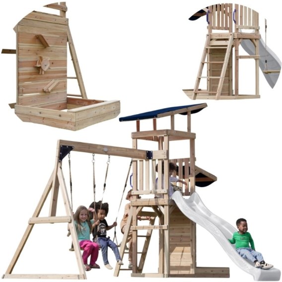 ✔ Dzięki różnorodnym elementom - wieży widokowej, długiej zjeżdżalni, podwójnej huśtawce i piaskownicy - dzieci mogą rozwijać swoją kreatywność, siłę i koordynację ruchową w jednym miejscu!