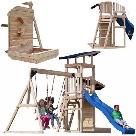 - Wielofunkcyjny zestaw do zabawy - wspinaczka, zjeżdżanie, huśtanie się i zabawa w piasku w jednym miejscu!