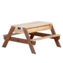Stół piknikowy Nick od renomowanej marki AXI to wielofunkcyjny stół, który ma tajne pomieszczenie z dwoma niebieskimi pojemnikami pod zdejmowanym blatem. Te niebieskie pojemniki można wypełnić piaskiem i/lub wodą, ale oczywiście można w nich przechowywać również zabawki. Dodatkowo pojemniki są wyjmowane, dzięki czemu można je łatwo wyczyścić. Klasyczne połączenie piasku i wody zawsze sprawdza się u dzieci! W mgnieniu oka zamienisz stół z piaskiem i wodą w stół piknikowy, na którym dzieci będą mogły tworzyć, rysować lub cieszyć się smakołykami.
