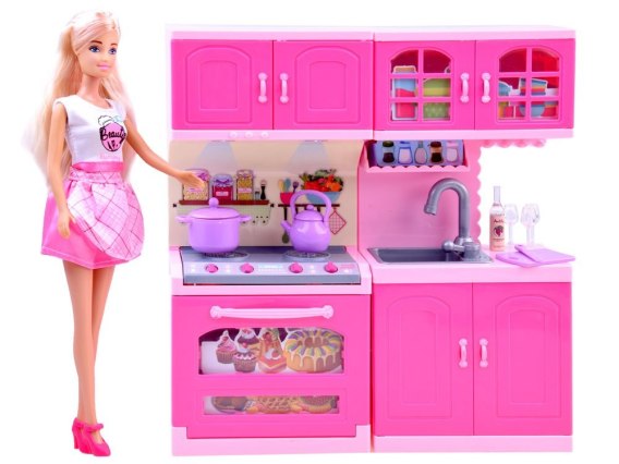 Zabawa z lalką Anlily w panią domu będzie świetnie urozmaicona dzięki meblom kuchennym. Meble wykonane w całości z plastiku świetnie odzwierciedlają prawdziwe meble kuchenne. Zabawa w gospodynią przypadnie do gustu każdej dziewczynce, która bacznie obserwuje świat dorosłych i uwielbia tworzyć swoje pomysły na bycie świetną Panią domu. Lalka posiada długie blond włosy, sukienkę z fartuszkiem wszystko zachowane w kolorach pastelowych. Meble kuchenne podzielone są na dwie meblościanki, posiadają szafki otwierane, zlewozmywak z działającym kranem i efektem dźwiękowym, piekarnik z efektami dźwiękowymi.