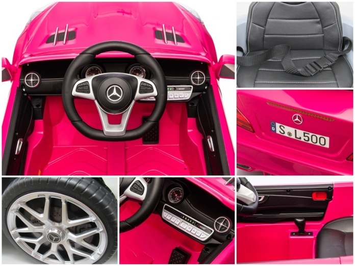 Autko na akumulator Mercedes SL500 RÓŻOWY Piankowe Koła EVA, fotelik ekoskóra- NOWA WERSJA